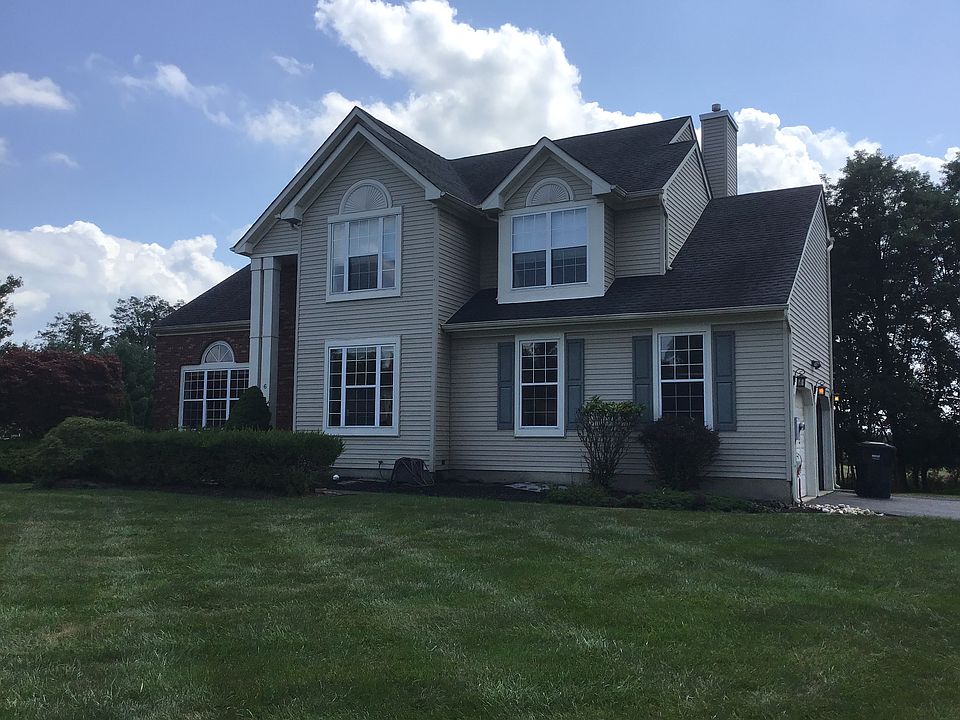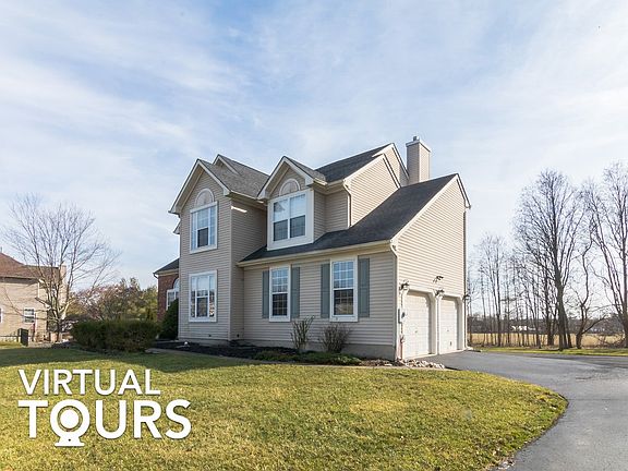 Every REX home comes with a 30-day buyback guarantee. Terms and conditions apply. Beautiful, elegant, and spacious home nestled in a quiet development surrounded by farmland with 5 bedrooms, 3 baths, and 2,326 square feet in Farmingdale! Very well maintained by original owners!! Situated on over half an acre of land at the end of a quiet cul-de-sac, this two- story home features tons of curb appeal, cathedral ceilings, beautiful hardwood floors, large open kitchen, partially finished basement with spacious rec room, and a sprawling backyard. Main floor provides a functional, open floorplan with a formal living/dining room, home office, and a family room with cozy gas fireplace. Soaring ceilings and large picture windows give way to lots of natural light. Eat-in kitchen overlooks breakfast nook and family room, and features upgraded granite countertops, center island, newer hardwood floors, built-in desk area, and stainless-steel appliances. Completing the first floor is a bedroom and full bath, great for guests! All of the bedrooms are located on the second floor and are all generously sized with large windows and ample closet space. Luxurious master retreat boasts wood floors, vaulted ceilings, walk-in closet, and an en-suite bathroom with dual vanities, separate shower, and a relaxing soaker tub. Large backyard surrounded by quiet and peaceful farmland with large deck and patio, great for outdoor entertaining! Central A/C. Roof only 10 years old. Ample storage throughout, including partially finished basement. Insulated and heated two-car garage. 50 amp subpanel. Home also has 50 foot farm easement on the back part of the property. Fantastic neighborhood near excellent schools, shopping, restaurants, and only 20 minutes to the beach!! Don't miss the chance to own this special home!