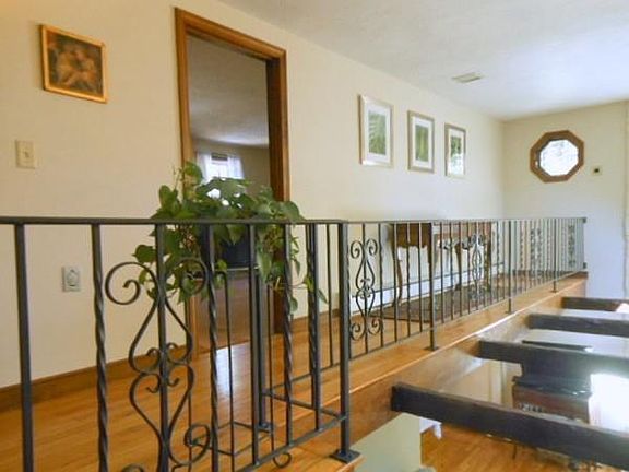 A circular driveway leads you to this beautifully maintained contemporary Raised Ranch on 3 levels featuring 4 large bedrooms, 2 1/2 baths, updated kitchen w/center island, open floor plan, living room with soaring beamed ceilings and dramatic balcony, large family room, gleaming hardwood floors, modern baths, sunny deck and 2 car garage. All this is situated on an acre plus landscaped lot with lots of privacy and a "patio in the trees" for al fresco dining or a quiet retreat. Come and enjoy this popular family neighborhod and all Marshfield has to offer. True pride of ownership.