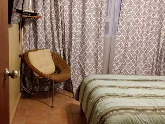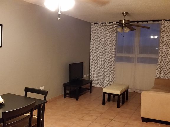Two bedroom and one bathroom 7th floor apartment. Fully furnished and equipped. Just bring your luggage and move in. All appliances, including inverter air conditioning units in both bedrooms, TV in master bedroom and living room, energy efficient water heater, washer and dryer, refrigerator, oven and range, microwave oven, cooking utensils, pots and dishes, etc. One parking space. Paseo de Monteflores is a building surrounded by forestal vegetation in a cul-de-sac that has controlled access, security post 24/7, administration office (working hours 9 am to 6 pm Mon to Fri). Three (3) elevators.