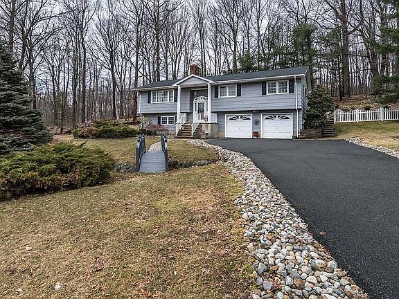 Custom expanded bi-level, with Colonial style columns framing the front entry. What makes this home very special is the EXPANDED AND RENOVATED CENTER-ISLAND KITCHEN, which opens to a huge great room addition with fireplace. Hardwood floors upstairs, updated baths, and grade level den/office with fireplace. Upstairs is equipped with 3 bedrooms, plus flexibility to have a guest, or in-law bedroom with full bath, on the lower level. Premium cul-de-sac location and private, mostly wooded 1/2+ acre lot. New roof, 200 amp electric, updated heating and central air. Don't miss this one!!
