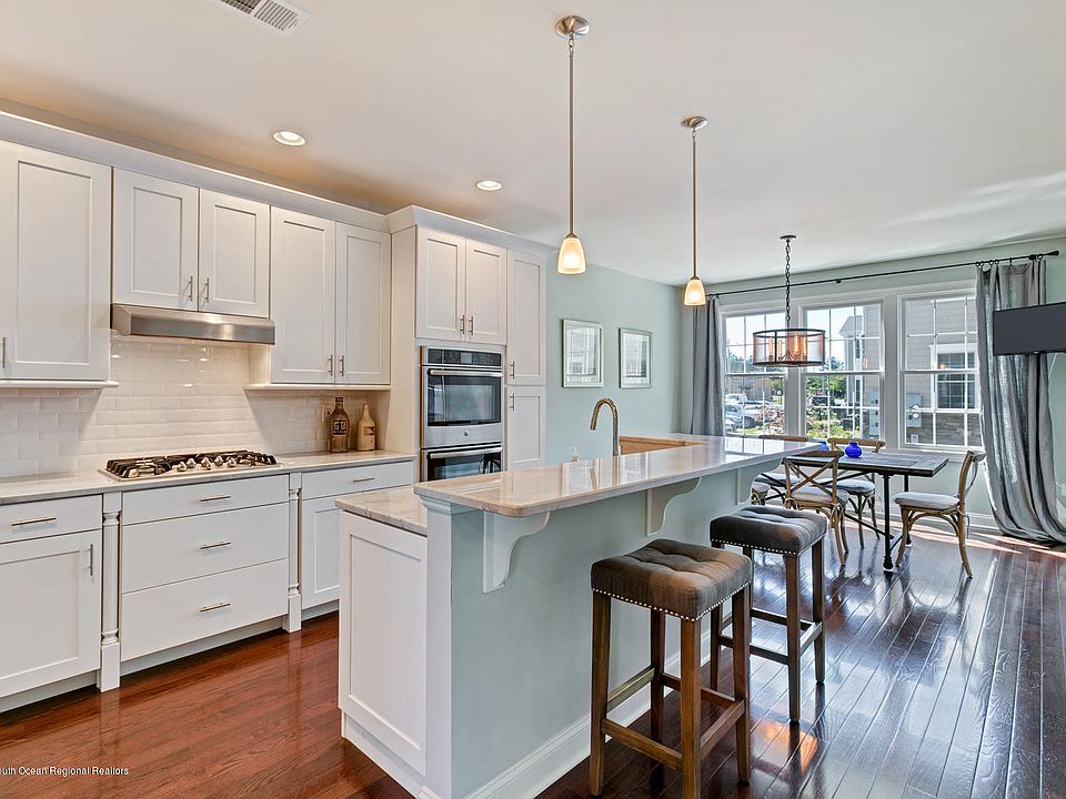 Exceptional new construction in Little Silver's prestigious ''Carriage Gate Highly sought after ''Croydon'' model has a fabulous open floor plan ideal for entertaining. Designer kitchen with stainless steel appliances, granite counters & center island opens to dining area with beautiful natural light. Expansive family room with gas fireplace & hardwood floors, office with French doors & full basement with high ceilings. Luxurious master suite with walk-in closet and en-suite bath w/ his/her sinks, glass enclosed shower & separate tub plus 2 add'l bedrooms w/ generous sized closets. Upscale community walking distance to LS train station, restaurants & town center plus only minutes from NY ferry & beaches! *Photos are of same model w/ 90% similar finishes,Home now has Plantation shutters.