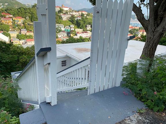 Enjoy cool breezes on the gallery of this hilltop home steps from the historic Denmark Hill Governor's residence. Classic, priceless view of the All Saints Cathedral neighborhood and Charlotte Amalie waterfront. Newly renovated, this 3 bedroom 2 bath home boasts new appliances - ceiling fans, a refrigerator and gas stove. With a generous, fenced exterior, pets can be accommodated. Laundry facilities can be added.