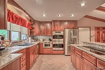 Fabulous home on a private 2 acre lot backing to trees at the end of a cul-de-sac. Newer furnace and AC , Newer roof and siding. Kitchen has been completely remodeled real wood, warm maple cabinets, Granite look countertops, breakfast bar, stainless double ovens, microwave, downdraft cooktop, stainless refrigerator, vaulted ceiling, recessed lighting and ceramic floors. Separate dining rm, Hexigon shaped breakfast rm with wood stove. Comfortable family room with wood burning fireplace, Multiple level decks overlooking swimming pool and large patio, perfect for entertaining! Finished walkout lower level with 2 additional bedrooms/den/office workout room and full bath. Kitchenette with sink, refrigerator and lots of cabinets. Storage / workshop with additional tuck under garage space for extra toys in addition to the 2 car side entry garage. Huge fenced yard! Home is a lot larger inside than it appears outside. Lots of sq. ft for the money!! Must see! Hillsboro Schools.