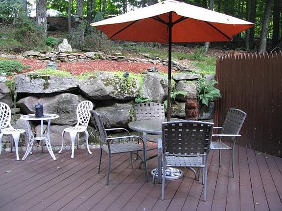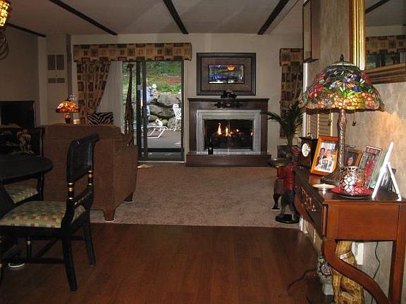 Why rent when you can own this three bedroom unit in desired Cedar Park Condominiums for so much less and enjoy so much more?From the moment you enter you will take note of pride of ownership and meticulous care of both the complex and this home.Many recent updates including newer eat in kitchen with appliances,rich wood cabinets and laminate floor.Open floor plan with skylights on main level where gas fireplace warms the space and is the focal point with beautiful custom mantle in spacious living room with brand new carpet.Sliding glass doors lead you to large 18X24' deck privately situated facing woods with room for all to enjoy backyard bar-b-ques.Upstairs you will find three large bedrooms and his and her closets in the master.Full bath boasts tiled shower updated for style and function.Additional features include central air,newer roof and Allure flooring on second floor,Community pool and convenient location just minutes to transportation,highways,Bethel Woods Performing Arts.