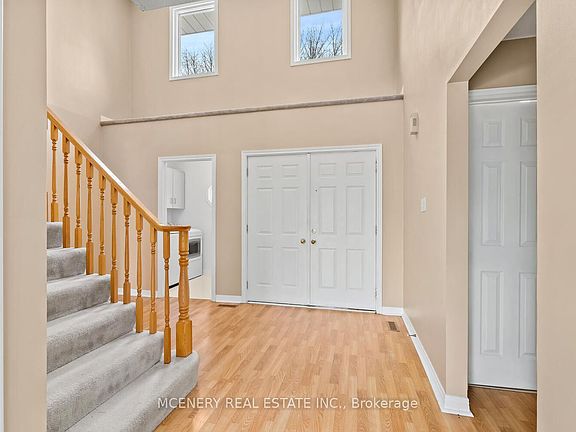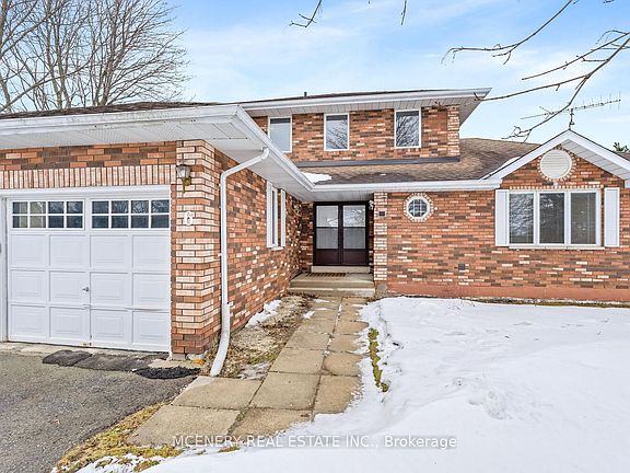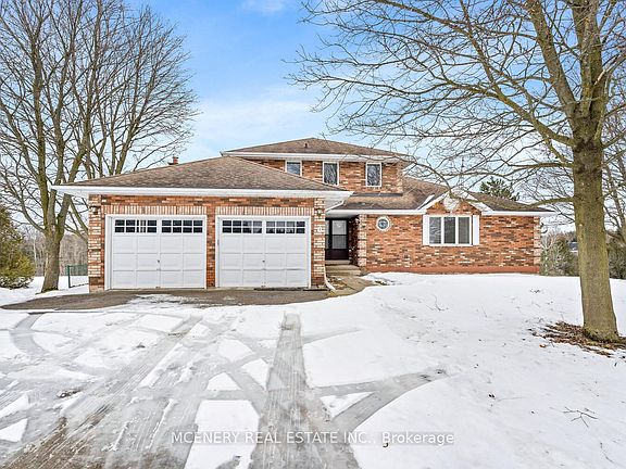 Private cul de sac on the edge of Erin, backing on to small creek and nature providing a beautiful private setting. Ideal home for those requiring extra space, with endless opportunity. 2,700 square feet of living space designed to accommodate both families and friends for entertaining. The main floor features a primary bedroom suite, with a fireplace, five-piece ensuite bath, walk-in closet, and an attached nursery or private home office. Open-concept living and dining room with a walkout from the dining area leading to a cantilevered deck overlooking the massive backyard provide the perfect setting. Second level boasts three good sized bedrooms with a shared full four-piece bathroom. Walkout basement adds even more opportunity for future expansion.