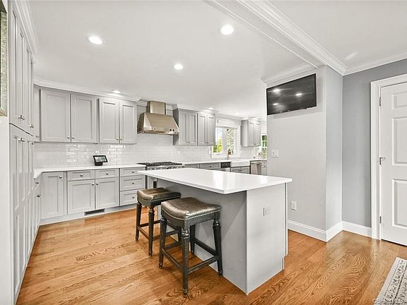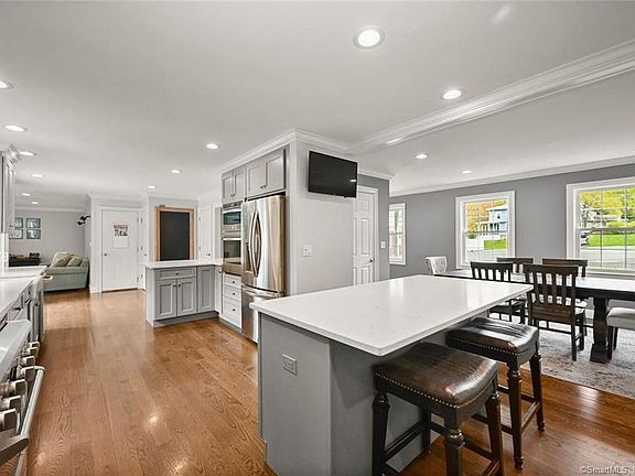 Stunning 5-bdrm, 4.5-ba home is loc in the highly sought-after Nichols sect of Trumbull, boasting an array of upgrades & renovations that make it a truly remarkable property. Remodeled kit features custom cabinetry, quartz counts, glass tile backsplashes, & high-end SS appls, making it a true centerpiece of the home. Throughout, beautiful hdwd fls run, providing an elegant & luxurious touch. Perfect for those who love to entertain, as it features an inground pool & a spacious Trex deck, ideal for hosting summer barbecues & gatherings w/ friends & family. Heated driveway. The fin bsmt offers 890 sq ft of addl living space, complete w/rec room, bar area, & full ba. There is also a legal in-law apartment w/its own entrance & garage, making this home ideal for those looking for a rental income opportunity. Recent upgrades to the home include a new roof & cedar impression siding installed in 2021, along w/ updated baths, hdwd fls throughout, & new thermopane windows throughout. The furnace & tankless water heater are new, ensuring that this home is both energy-efficient & comfortable. Beyond its many amenities, this home is conv loc near schools, parks, shopping, & highways, making it an ideal location for those who desire both comfort & convenience. Whether you are looking to relocate your family or simply upgrade your living situation, this move-in ready home is sure to impress. Don't miss out on this opportunity to own a beautifully upgraded home in a highly desirable loc. Located in the highly desirable Nichols section of Trumbull, Connecticut, this stunning 5-bedroom, 4.5-bathroom home boasts numerous upgrades and renovations throughout. The kitchen has been completely remodeled with custom cabinetry, quartz countertops, glass tile backsplashes, and top-of-the-line stainless steel appliances. The hardwood floors throughout the home add to the classic and elegant feel of the property. The finished basement offers 890 square feet of professionally finished living space, including a large rec room, bar area, and a full bath. There is also a legal separately attached in-law apartment that has its own entrance and garage. This home is perfect for entertaining guests with an n 18x36 ft inground pool and large Trex deck, which were both added in 2011. Additionally, the exterior of the home has been updated with new cedar impression siding and a new asphalt roof in 2021. Some of the other notable upgrades and renovations include three new garage doors in 2010, a new heated driveway in 2011, and a high-efficiency furnace and Navien tankless hot water heater also installed in 2011. In 2015, both the first and second-floor bathrooms were renovated with high-end materials, including a heated floor in the primary bath. The year 2016 saw a complete kitchen renovation, and a new furnace and hot water heater were added to the in-law apartment. A propane gas fireplace was built into the family room in 2017, and the second floor was updated with new hardwood floors in 2019. The primary bedroom and bath were also reconstructed in 2019, and the entire house received new thermopane windows. A new garage shed was installed in the rear of the yard in the same year. This beautiful, move-in ready home is conveniently located close to schools, parks, shopping, and highways. With over 11 rooms, including the finished basement and in-law apartment, this property offers ample space for comfortable living. Don't miss the chance to make this gorgeous home your own.