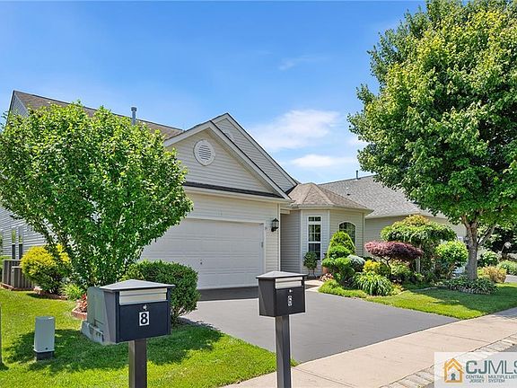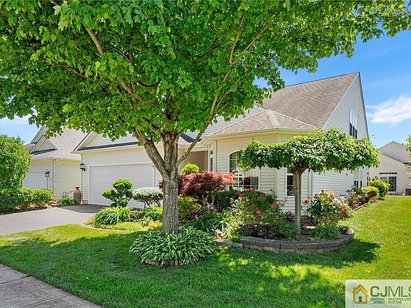 Welcome to Renaissance at Cranbury Crossing (adult community)! This Kensington Model home offers 3 bedrooms, 3 full bathrooms, and a 2-car garage. Enjoy 3,065 sq ft of living space, complete with a private paver patio for outdoor relaxation. Built in 2010, it boasts 9-ft ceilings on the main level and ample storage throughout, including multiple walk-in closets and attic storage. The main level features an open concept, light filled eat-in kitchen and living room with vaulted ceilings plus formal dining room and sun room. The primary suite with vaulted ceiling includes a walk-in closet and a luxurious bathroom with dual sinks, a soaker tub, and a separate shower. Another bedroom and full bathroom, laundry room, and access to the garage complete this level. Upstairs, a loft and bedroom with full bathroom offer additional space. Additional features include prepaid, leased solar panels (huge savings on electric), hardwood floors, custom blinds, and a two-zone heating/cooling system.