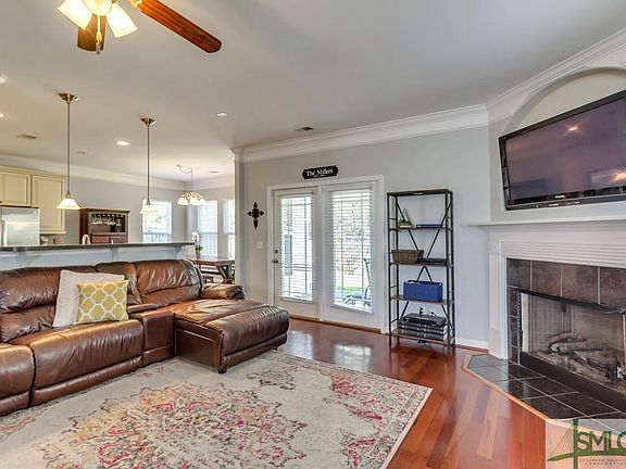 Enjoy living in an established and secure community that boasts great amenities and is just minutes to historic downtown Savannah, restaurants, and much more! This previous model home features an open floor plan and formal dining room with wainscoting and crown molding! Gas fireplace and gorgeous wood flooring throughout the first floor! Spacious eat-in kitchen including stainless appliances and custom cabinets! All bedrooms upstairs with walk-in closets and loft area! Huge master bedroom suite with his/her walk-in closets and luxury bath including double sinks, garden tub, and separate shower! Relax on the covered patio and enjoy the quiet confines of a very private fenced backyard overlooking the woods! 2-car garage! Will not last!