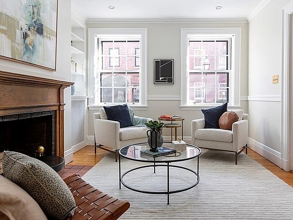 6 Charles River Square is situated on the flat of Beacon Hill in a picturesque English Style Square. Bathed in Southern light, the home measures 3,240 SF and includes distinct living areas on all three floors, 4 bedrooms + den, 2 full and 2 half baths, 3 fireplaces, a home office, garden, a NEW roof + deck and parking at your front door! The entry level includes a living and dining room, a powder room and a well equipped eat-in kitchen with windows overlooking the garden. The sun drenched living area on the second floor features a fireplace and 3 windows that overlook the Square. The primary bedroom spans an entire floor and features an en-suite bath, fireplace and a large walk-in closet space and 2 additional cedar-lined closets. Outdoor space includes an expansive 750 SF ROOF DECK and a deeded lot in the Annie Fields Garden. One ASSIGNED PARKING SPOT is right outside your front door. A block to MGH and the shops and restaurants of Charles Street.