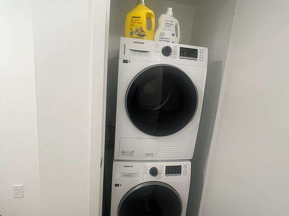 Occupancy for the 600-sqft studio/bachelor, 1-bathroom condo unit. Central heating and AC. 1 parking spot included. Included appliances: fridge, stove, dishwasher, microwave, washer, dryer, and range hood. Building amenities include: fitness facility.