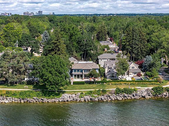 Lakefront Elegance in the Heart of Old Oakville! Welcome to an exceptional waterfront residence that defines refined lakefront living. Nestled at the foot of prestigious Chartwell Road, this private and serene estate offers the rare blend of Muskoka-like tranquility with the convenience of being just moments from the heart of downtown Oakville.Completely reimagined in 2019 with a recent masterful renovation inside and out, this home has been thoughtfully curated under the direction of acclaimed architect & designer Rodney Deeprose, and constructed by the esteemed Horne Construction. Every detail exudes elevated taste, from the marble inlay foyer and double-sided stainless steel fireplace to the carefully selected finishes throughout.The open-concept main floor is flooded with natural light, thanks to a dramatic wall of Kolbe windows that frame breathtaking lake views. Designed for both grand-scale entertaining and intimate family gatherings, the space flows seamlessly through the principal rooms. The gourmet kitchen is a showpiece, featuring Cambria quartz surfaces, Bloomsbury cabinetry, premium appliances, a walk-in pantry, and a fully equipped servery.The principal suite is a sanctuary unto itselfwake to unobstructed lake views, enjoy morning coffee and unwind in the luxurious 5-piece spa-inspired ensuite with heated floors and oversized walk-in California Closet. A screened sunroom, accessed directly from the suite, provides a peaceful space to enjoy the sights and sounds of the lake year-round.Two additional spacious bedrooms, designer-appointed main bath, and a large laundry complete the second level. The professionally finished lower level offers a generous recreation space, fourth bedroom, and a full 4-piece bathroom featuring a steam showerperfect for guests or extended family.Outside, an expansive stone patio with gas fireplace extends your living space practically to the waters edge with gated rear entrance to trail access. Generous garage with loft !