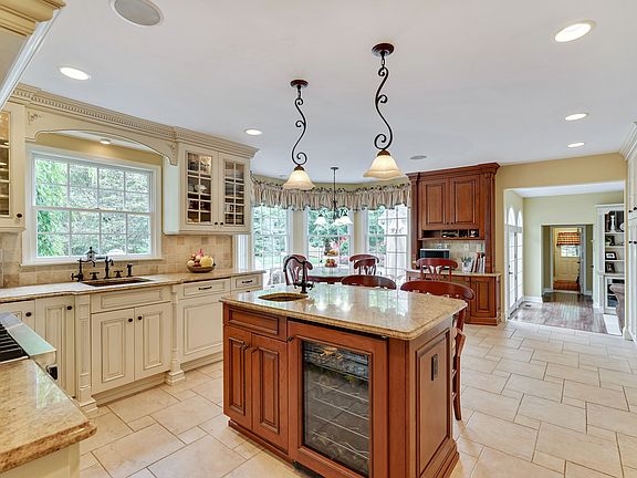- RoomKitchenFeatures: Center Island, Eat-In, Granite/Stone Counter, Newer, Dinette, Floor - Ceramic, Bay/Bow Window, Dec Molding