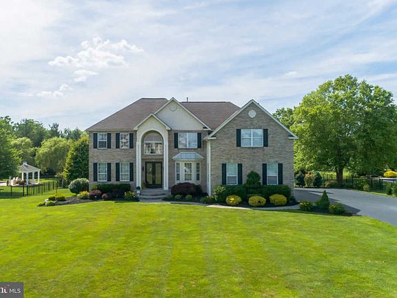 Exceptional opportunity in Mullica Hill!! Situated on an acre in a private cul de sac with an outdoor oasis, this home has it all. Colonial brick and stucco exterior, professionally landscaped front with sprinkler system, paved walkway leads you to the double wood and iron front doors. Open into the foyer to a semi circular front staircase, elegant office to the right and soothing living room to the left, along with the grand dining room fitting large family gatherings. The gourmet kitchen is open to the family room, custom 42 inch cabinets, with cooktop, island, double ovens, large sink overlooking the pool, a beverage center, kitchen desk, plenty of storage space, metal backsplash over the stove, and granite counter tops. The two story family room is open to the kitchen and has a back staircase leading to the master bedroom. The master bedroom is large with an inviting bathroom suite including a soaking tub, shower separate vanities and enclosed toilet room. The master bedroom closet is a woman~s dream closet. There are two large bedrooms with walk in closets and a jack and jill bathroom. The fourth bedroom is a suite with its own walk in closet and separate bathroom. The finished basement has a full bathroom, music area, game room, media room and a storage room along with a sliding glass door to the back yard letting ample natural light into this area. The back yard is magnificent!! The entire patio is done multi tiers in pavers, with waterfall, koi pond and pergola. The pool has a rock waterfall also, professionally landscaped and completely iron gated in. You will love to entertain in your new backyard. Truly your dream home.