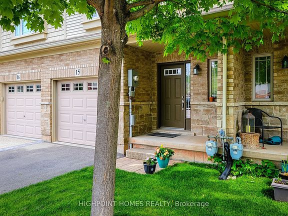 Stunning Freehold Townhouse with Escarpment Views! Welcome to this beautifully maintained 3-bedroom freehold townhouse, perfectly situated with scenic views of the Niagara Escarpment. Ideally located within walking distance to shopping, dining, parks, an arena, splash pad, and with quick access to the QEW and the upcoming GO station this home is perfect for commuters and families alike. Step into a spacious, modern open-concept main floor featuring 9-foot ceilings, granite countertops, a large island, stainless steel appliances, rich hardwood flooring, a stylish2-piece powder room, and convenient inside access to the garage. Garden doors open to a lush, maintenance-free backyard with a new concrete patio and custom built-in planter boxes perfect for relaxing or entertaining guests. Upstairs, you ll find three generous bedrooms, two full bathrooms, and a large, conveniently located laundry room. The primary suite is a true retreat, offering a spacious walk-in closet with a window and a private 4-piece ensuite bath. Lower level boasts an oversized window, a cozy den, an additional flex space ideal for a home office or gym, plenty of storage, and a bathroom rough-in offering flexibility for future customization. Whether you re a growing family, need space for guests, or are looking for a fantastic rental investment, this home checks all the boxes!