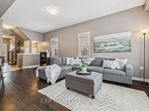 Welcome to this charming 3-bedroom end-unit townhouse in Grimsby, ideally located at the end of a quiet dead-end street, nestled between the scenic Niagara Escarpment and Lake Ontario. Inside, youll find a spacious open-concept layout that seamlessly connects the kitchen, dining, and living areas, perfect for both relaxing and entertaining. The kitchen features a breakfast bar, and theres convenient interior access to the garage, along with a handy 2-piece powder room on the main floor. Upstairs, the large primary bedroom boasts a generous walk-in closet and ensuite access to a 4-piece bathroom with a relaxing soaker tub and separate shower. Two additional well-sized bedrooms and a laundry room round out the upper level. The finished basement adds even more space with a large recreation area, perfect for family time or entertaining guests. Ideally situated just minutes from Peach King Arena, parks, schools, shopping, and dining, this home offers unbeatable convenience. With the new proposed GO Station nearby and easy access to major highways, commuting is a breeze.