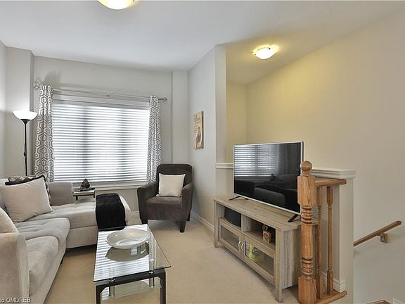 Fabulous freehold with walkout basement to backyard & escarpment views! Don't miss this award-winning builder Losani Homes. Charming three-story freehold townhome. 2 bedrooms, 1.5 bathrooms. Decorated in colour hues. Great open concept living room area. Bright and sunny dream cream coloured kitchen with Eat-in area, upgraded glass cabinetry, stainless steel appliances including fridge, stove, dishwasher, walk out to balcony & watch the sunset! Main floor laundry. Second floor boasts spacious master bedroom with feature wall, walk-in closet and second bedroom closet. Well sized 2nd bedroom. 4pc Main bathroom. Lower level Recreation area is complete with garage access, utility room with laundry tub, walk out to fully fenced backyard. Overlooks green space/park. Located close to schools, shopping, highway access, Lake, recreation areas!
