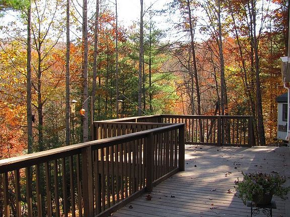 Peaceful wooded setting with mountain views from large deck. Open floor plan centered around stack stone fireplace. Kitchen ideal for entertaining with expansive countertops, built in buffet and all appliances. New laminate floors in living & dining areas, fresh paint throughout & 1 year home warranty make this affordable home move-in ready. Walk-in closets in all 3 bedrooms. Dual Vanity, garden tub and separate shower the in Owner's suite. 16x10 heated & cooled outbuilding, gre...