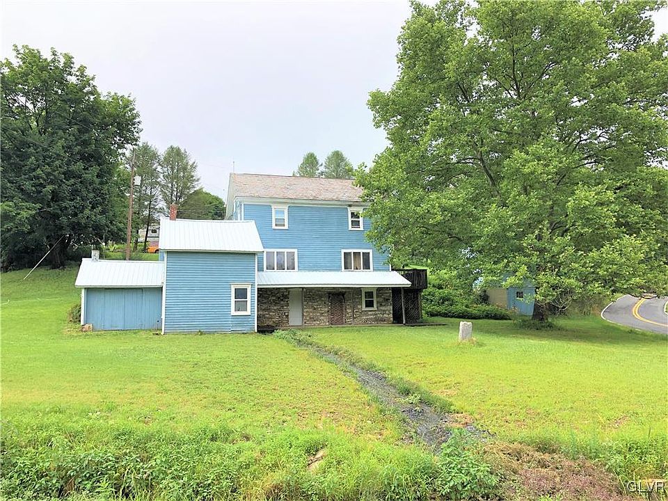 Country 1800's farmhouse on 3+ acres nestled into the hillside on corner lot with walkout lower level. Large 4 car detached garage and multiple original outbuildings on the property. Natural stream runs through the front of the lot and empties into the neighbor's pond. Quiet location only a short distance to the D&L Trails, Appalachian Trail, Lehigh River.