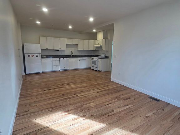 This beautifully renovated 900 sq ft apartment offers 2 bedrooms and 1 modern bathroom on the first floor, complete with its own private entrance. Enjoy gleaming hardwood floors, freshly painted walls, and a kitchen outfitted with modern appliances. The brand new bathroom features a touch screen mirror interface that defogs the glass for added luxury. The unit is equipped with forced hot air gas heat and central air conditioning for year-round comfort. Additional conveniences include coin-operated laundry in the basement and off-street tandem parking for up to 2 cars. Move-in costs include first, last, and security deposit, with terms potentially negotiable for applicants with excellent credit and income. Please note, no pets or smoking are allowed. 1 year lease. Landlord pays for water and sewer. Tenant pays for gas heat and electricity. First, last, and security to move in (negotiable for exceptional applicant). No smoking and no pets.
