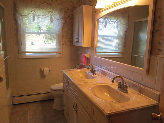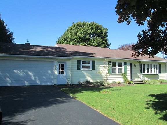 Beautiful 3 bedroom ranch. Well maintained country kitchen with island, lots of cabinets and pantry; appliances included. Large living room with hardwood floors & bay window. Dining room with built-in shelves. Updated bathroom, new windows, 2.5 car garage, patio. Shed is vinyl sided and has tin roof. Nicely landscaped yard.