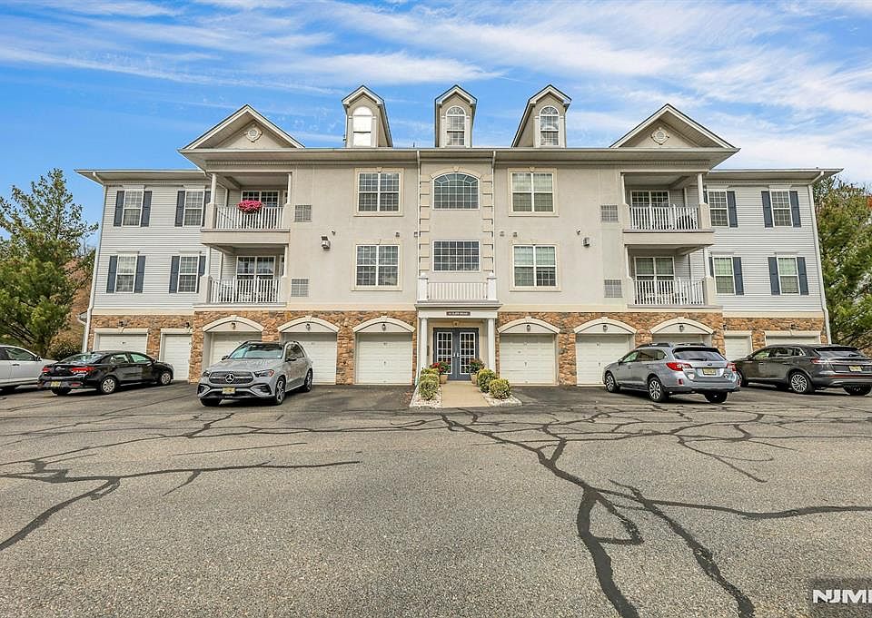 Welcome to 4 Seasons at Great Notch, a vibrant 55+ gated community! "Magnolia" 2-bedroom, 2 bath unit located on the 2nd floor in an elevatored building with a fabulous view of Rifle Camp Park off the balcony! This well-kept home has approx 1,750 sq ft of living space, a built-in private 1-car garage with storage room and parking space! Living/Dining room combo with gas fireplace and door leading to a spacious balcony, gourmet kitchen with double oven, gas range, dishwasher, microwave & refrigerator. Granite counter tops, breakfast nook, spacious den, laundry room, 2 bedrooms & 2 tiled baths (Primary King-size bedroom has a walk-in closet, full bath with double sink, shower stall, and jetted soaking tub. Hardwood flooring in the living area, wall-to-wall carpet in bedrooms. Pet-friendly, maximum of 2 pets, no breed restrictions. Gas forced air heat, gas water heater, and central AC. Maintenance fee of $529 includes amenities such as: clubhouse with gym, indoor & outdoor pool, card room, ballroom, billiards, bocce, tennis & pickleball courts, putting green, and more! Conveniently located near major roads.