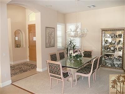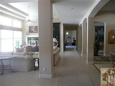 A great price in the quiet east side of famous Ivy League Estates away from busy Bob Hope Drive. Owner paid $1,313,000 in Aug. 2006. Everything is stunningly together in this home and spotlessly clean. Looks like no one has ever lived there--they haven't very much. This is a true luxury home with high ceilings, spacious rooms, very large kitchen, wet bar with wine cooler, two fireplaces & it's tastefully furnished. Master suite has sitting room with fireplace, and a very large master bath w/double closets and jets in bath tub. Rear patio is extra long and overlooks plush rear yard w/pool and a great elevated spa that cascades down into the sparkling pool. Rear yard is edged in expensive pre-formed concrete edging to add that finished look. You will love the seperately air-conditioned 3 car garage with epoxy-fleck concrete floor coating. This price includes 3 TV's, 2 refrigerators (1 in kitch. & 1 in air-conditioned garage), washer & dryer. Some furniture may be negotiable.