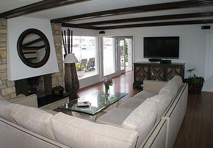 Single level home on the bay with over 200' of water frontage. One of only 8 homes on the gated island at the far west of end Balboa Island. Fully furnished inside and out with the use of beach cruisers, and an electric Duffy boat.  Expansive patio area with multiple seating areas, bbq, and fire pit. The home includes flat screen televisions in every room, a pool table, wet bar and a remodeled kitchen. A short walk to the ferry takes you to the beaches and the fun zone of Balboa Peninsula.