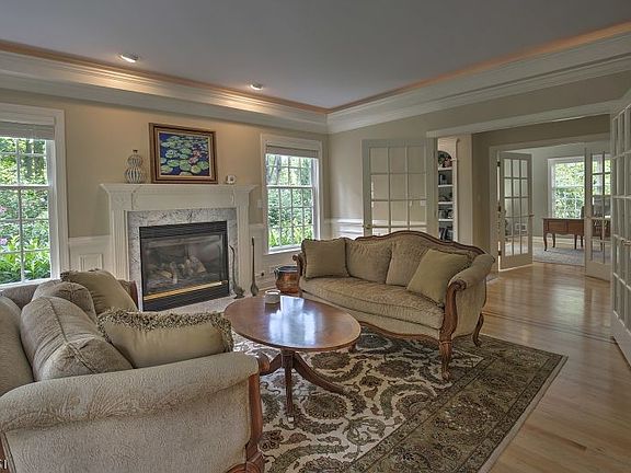 Immaculate custom colonial with impressive updates & beautifully sited on 5+acres.Extraordinary backyard living space featuring salt water pool,spa 2 tiered Ipe covered deck, & glorious landscaping. This stunning home boasts a sun filled 2 story foyer open to both the living room with gas fireplace & formal dining room with shadow box molding,both with hardwood flooring & walnut inlay.Straight ahead, thru pillared archway,is an inviting family room with fireplace &open to gourmet kitchen which features many updates & top of the line stainless appliances.The hallway, with double closet, pantry & custom built-ins, leads to an office, mud room & 2 Powder rms. Second floor master suite,with new bath,sitting room & fireplace is exceptional, plus 4 additional lg. bedrooms,2 en-suite & 2 sharing Jack & Jill bath