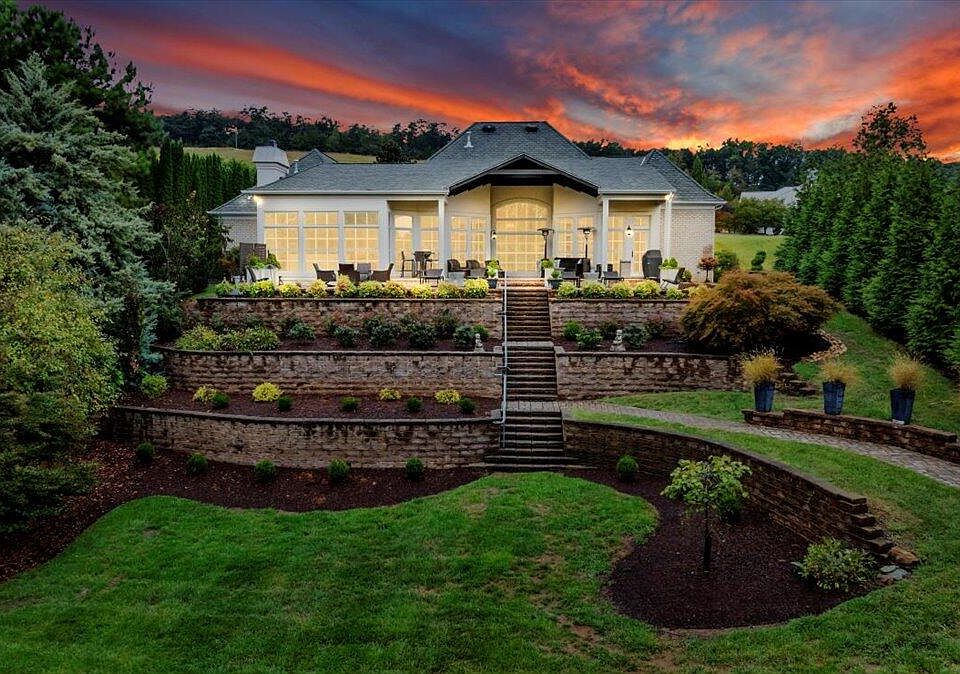 Quiet no-wake coveLush landscapingOpen layoutStone pathwayCustom-built lake homeEuropean stone terracesCovered veranda