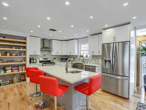 Welcome Home to this stunning, fully renovated 4 Bedroom Colonial. Nestled on a wooded lot at the end of a cul-de-sac, it is the perfect setting for casual living and entertaining. Be WOWED when you enter the home to find yourself in a fantastic open concept space enhanced by oak hard-wood flooring, recessed lighting, a floor to ceiling stone fireplace, the sleek, modern all stainless kitchen, center island, and formal dining area, which opens via glass sliders to the back deck and private back yard and woods. Upstairs, vaulted ceilings create an impressive frame for the master bedroom, dressing area and ensuite bath. The three additional bedrooms are all good sized and share the main bath which has double sinks, separate tub and a striking tiled walk-in shower. Finally, don't miss the fully finished, walk-out lower level - perfect as a family room, home gym, or office. Beautifully tiled floors, recessed lighting, & faux stone wall & electric fireplace compliment the upstairs d cor.