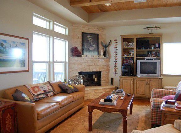 Copano Point Spectacular Copano Point home allows you to combine the beauty of BIG Copano Bay Views with the opportunity to construct a convenient canal front boat house/slip/ramp across the private street. 2 bedrooms/2 full baths upstairs and 2 bedrooms/2 full baths downstairs provide spacious accomodations with the utmost in privacy. Well-designed Great Room encompasses convenient kitchen w/eating bar, substantial dining area and sitting area with wood burning stone fireplace- all with forever bay views. Large screened porch provides a peaceful oasis for enjoying the outdoors. Private lighted fishing pier extends into Copano Bay. Upgrades include an elevator, oversized garage and electric hurricane shutters.