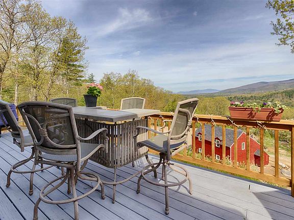 Located in a highly desirable neighborhood with dramatic views of the Sandwich and Ossipee Mountains, this privately situated 4300 sq. ft. home with many architectural details, and an in-law suite sits on 7 acres of land. The first-floor entry with double closets leads into a formal dining room featuring hand-carved solid oak ceiling beams, dry bar with wine rack and sconce lighting flows into a gourmet chef kitchen with granite countertops, Viking Professional Series refrigerator, and double oven with a 6 burner and grill range, custom cabinetry, copper tin ceiling, large granite island and pantry. The open concept flows into an elegant spacious living area with natural stone fireplace, 20’ vaulted ceiling, bay windows and French doors leading out to a deck. A generous master bedroom with walk-in closet and en-suite jetted Jacuzzi tub, stone shower and granite counter top. An additional bedroom and bathroom with laundry completes this floor. Solid oak hardwood floors, radiant heat, transom windows, freshly painted interior and exterior.An impressive staircase leads to the second floor with additional bedroom, office, 3/4 bathroom, walk-in attic. Carpeted hallway overlooking great room.Lower level in-law suite, full eat-in kitchen, granite counter tops, 3/4 bathroom, living room w/French doors, high ceilings and 2 additional living areas.Outside – new artesian well and roof, natural stone walls, two level parking and two car garage. 40X36 1 3/4 barn, horse stall/paddock.