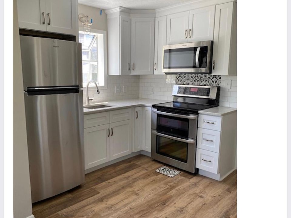 Spacious living room, new kitchen, bedroom for king size bed, second room to fit double bed, 1.5 baths, all new stainless appliances, wrap around deck, partial view of Banks Channel Sound, one block from ocean, fresh inside paint and LVP floors Pets maybe allowed Renter pays electric, water, sewer, trash pickup and maintain small grass yard