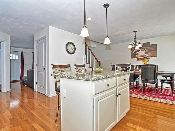 Immaculate Classic New England Farmhouse with a modern twist in the highly desired Maplewood Estates! Gleaming hardwood floors, an open floor plan, and large living room greet you. Flow nicely into the open and bright modern kitchen with granite counters and island, custom cabinetry, a farmhouse sink, and a spacious dining area with a glass slider leading to the Trex deck. A convenient half bath and the laundry complete the main level. Upstairs is the generous master suite boasting a walk-in closet and full ensuite with a jetted tub. Across the hall are two more good sized bedrooms and an adjacent full bath. There is even more living area with a family room and bonus room on the walkout lower level. Enjoy outdoor living on the deck overlooking the flat fenced backyard with a paver patio. Conveniently located to all area amenities, Cape Cod, Boston, and Route 3. Come to see this beautiful home at the open house!