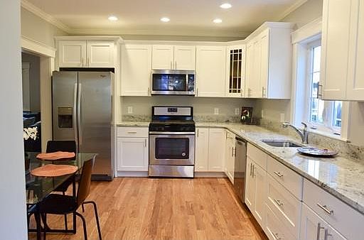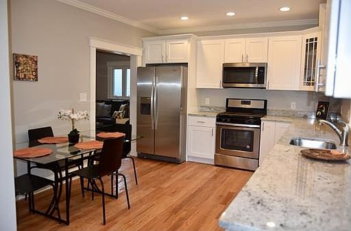 Location,Location.Single family in East Arlington! Welcome to 6 Cottage ave a completely renovated and conveniently located home in E. Arlington minutes from the Red line, the Avenue & all the Theater district has to offer. New kitchen,bathroom,plumbing,,and more.This meticulously rehabbed home has a beautiful back deck, overlooking the large landscaped yard with a freshly paved driveway, .This cozy home is "turn key" with beautifully refinished hardwood floors,fresh paint, new kitchen with white cabinetry, stainless steel appliances, and granite counter tops. The 1st floor consist of living room, dining room, den, half bath, and kitchen leading to the back deck. The 2nd level has three generously sized bedrooms one which is the master with full bath and walk in closet, a second full bath, and a laundry closet for washer and dryer. 3rd level has a carpeted bonus area great for the kids or home office.
