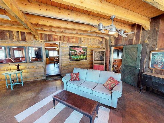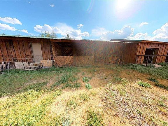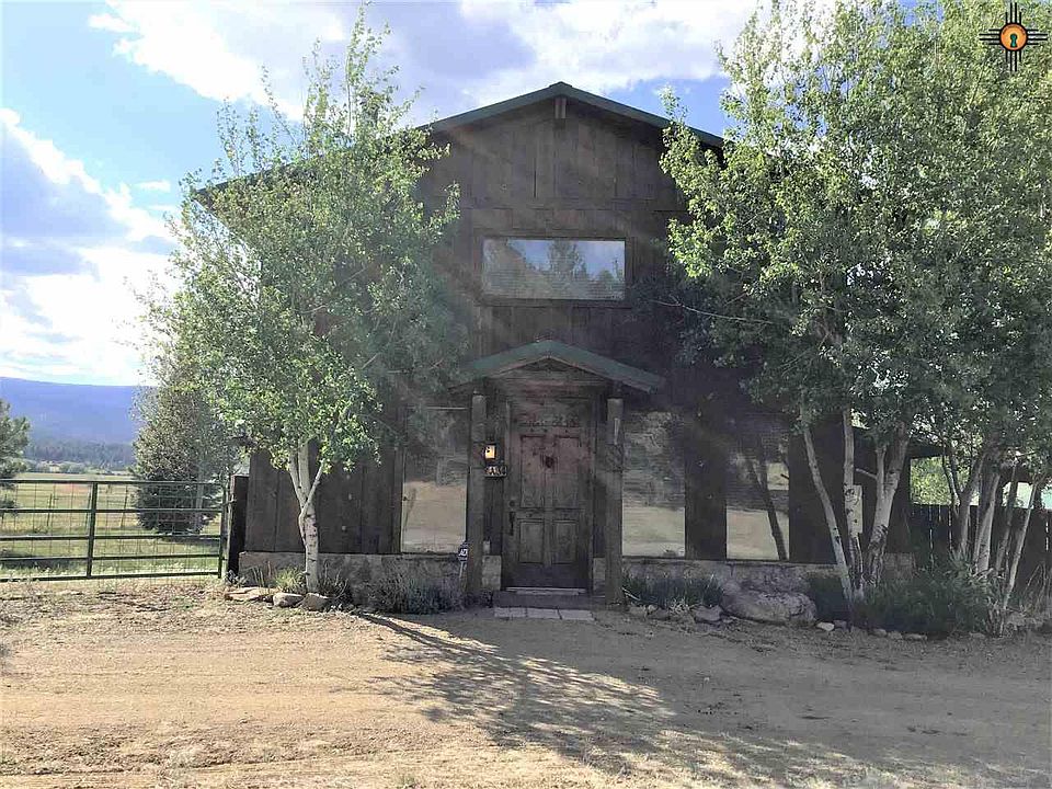 Located at the entrance to Pendaries on County Rd A 34 enjoy the convenient location without the HOA assessment. Enjoy panoramic valley, mountain and golf course views. Rustic log cabin home that has preserved the history of traditional mountain living. 3 bedrooms, 2 bathrooms, open floor plan with large living room and kitchen and dining. Wrap around deck. Master bedroom with electric fireplace and walk in closet. Beautiful private courtyard with views. Outbuildings contain a storage area that could be converted into an office or small efficiency apartment, workshop, garage, and tack room. Stalls and corrals all set on just over 1 acre. Private well and septic system recently pumped. Located within 2 hrs drive to Santa Fe, Taos, and many of northern NM ski resorts. Local recreational activities include golfing, hiking, fishing, and biking, Whether you're looking for a mountain retreat, full time residence, or a vacation rental, this is the ideal location to take in all the Rociada Val