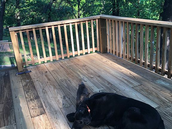 This charming house has 2 bedrooms, 2 baths, a gorgeous view of Lake Hudson and a large deck in the back to rest your feet and enjoy your view! Also includes stairway access to the lake.
