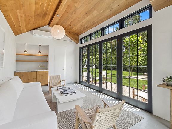 Rental Registration #: 23-1,243 Located on a private lane in the heart of Amagansett village, this 2 bedroom plus studio, 3 bathroom chic renovation of an 1880's home with new gunite pool offers the perfect beach vibe for relaxing and entertaining. Bordering reserve and the Amber Waves Farm, the ideally located property has easy access to the Farmer's Market, Amagansett Square with shops and restaurants and world-famous beaches. The light and bright main house reimagined in Scandinavian white and neutrals has a ground floor bedroom and full bath, living and dining area, charming kitchen and a glass surrounded lounge with TV overlooking the verdant back yard. Upstairs a lovely, lofted primary suite takes advantage of the farm views with a sitting area, bedroom and full bath. The stylish home features the highest quality materials inside and out from finishes to furnishings to art with a tasteful and inviting design aestheticA separate high-ceiling cottage with a full bath, bar and outdoor shower offers additional living space and opens through French doors to an outdoor lounge and dining area with BBQ and a 14 x 34 foot heated gunite pool. Privacy is assured with a fully fenced grass yard lined with evergreens. Period details like the welcoming front porch, original flooring and stained glass offer glimpses of the history while embracing all modern amenities. This secret gem is village living at its best close to the Hampton Jitney and train stop as well as miles of pristine beaches and Hamptons enjoyment.