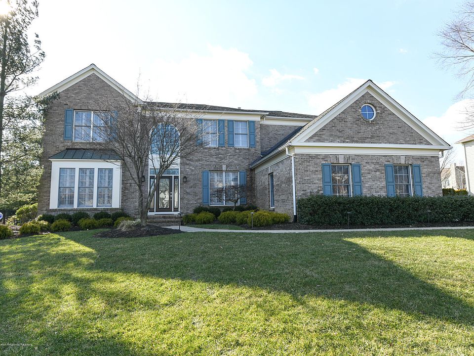 Don't delay in seeing this meticulous home in desirable Holmdel Ridge. Brick Front, 4 Bedroom 4F 2H Bath center hall Colonial with approx. 5,280 sq. ft. across three-levels. Grand two-story entry into the formal Living and Dining Room, and two story Family Room with gas fireplace. Eat in Kitchen extended with Sunroom fit for a gourmet chef with stainless-steel appliances, large island and Pantry Closet. Office/Den, Laundry & more. Finished walk out basement and full bath. All upper baths are new, high ceilings, flooring is hardwood, tile and carpeting, recessed lighting, plantation shutters throughout.Amazing backyard retreat for entertaining with expansive patio, professionally landscaped, gas firepit, luxurious heated, gunite, salt water pool, and spa. Pool House includes