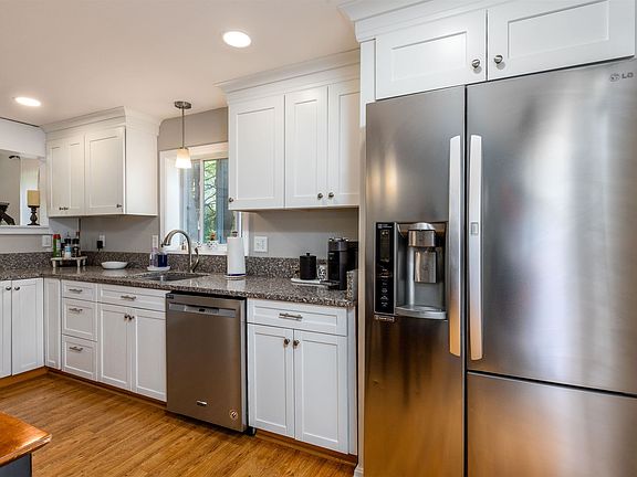 Nestled among the trees at the end of the cul-de-sac this beautifully updated home awaits you. Offering stunning water views and private backyard, this spacious 2-3 bedroom contemporary will not disappoint. Open concept main living area boasts updated kitchen w/ deck and living room along with half bath and 1st floor laundry while two large bedrooms await you upstairs with a updated full bath. The lower level offers an office area and oversized family room (or additional bedroom if needed) which provides walkout access to your private oasis. The spacious backyard, complete with shed and firepit, has spectacular water views of a small pond. Nothing to do but enjoy!! Offer deadline of 2pm, Monday, May 30,2022.