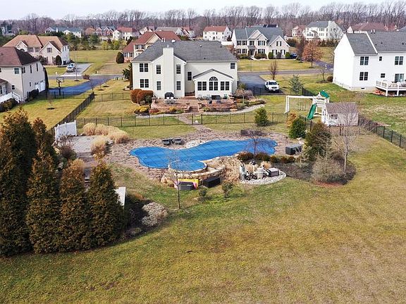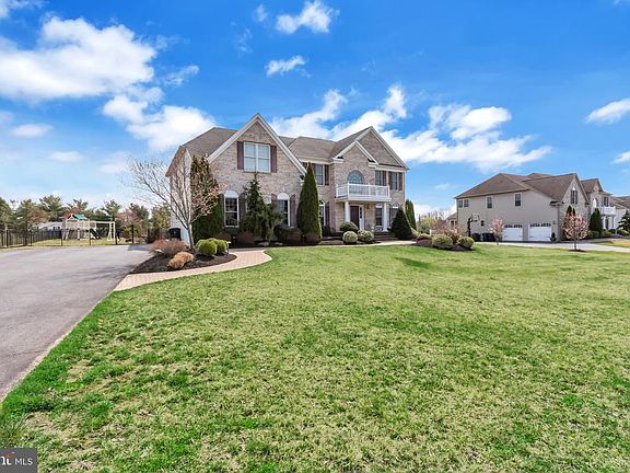 Located in one of Mullica Hill's most desirable communities, Woodland Creek, is where you will find this stately brick home built to the highest standards and featuring all the modern amenities one would expect. This stunning property rests on an open acre lot and boasts one of the most pristine paver patio backyards and in-ground pools in the area. The two story foyer greets you with gleaming Brazilian hardwood floors that flow throughout most of the first floor, as well as an upgraded hardwood staircase with wrought iron spindles. To right is the open and bright living room, to the left is the detailed dining room complete with shadow boxing wall trim, crown molding, and thick baseboards. The gourmet kitchen is a cooks dream with a large 9+ft. center island, walk-in pantry, plentiful cabinet space, stainless steel appliances, large polished porcelain tile flooring, built-in wine fridge and a spacious breakfast room lined with windows. Relax in the upgraded family room with the two-story gas fireplace and additional bump out. Work from home in your private and spacious office, also located on the first floor. The second floor offers a luxurious master suite, featuring a massive walk-in closet which was converted from the original sitting area, a second walk-in closet, and a private master bathroom with a double vanity, large soaking tub, and extra large tile shower with multiple shower heads with their own heating and cooling controls! Then there are three more detailed bedrooms furnished with chair rails and shadowing boxing, as well as a full bathroom with a tile shower to complete the second floor. The large finished basement is fitted with a custom bar, a gym, a large play/flex room, as well as another media room/office. The backyard is an absolute entertainers paradise, leaving no details spared. From the large paver patio, paver walk-way and oasis, outdoor kitchen/bar, electric hook-ups, newer shed in the spacious fenced-in field behind pool, saltwater gunite