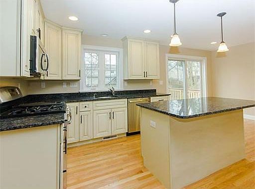 NEW CONSTRUCTION - Elegant and sophisticated this 4 bedroom, 2 ½ bath home has it all! Inviting floor plan with gleaming hardwood floors throughout, spacious family room with fireplace and gourmet granite/stainless kitchen with center island and breakfast sitting area. Second floor offers a large master suite with oversized walk-in closet and luxurious master bath. Situated on large level lot, beautifully landscaped with farmer's front porch, a deck in the back and two car garage in desirable neighborhood. Easy access to RT 128, shopping, public transportation and more!