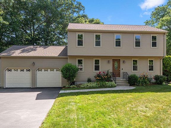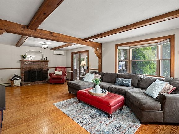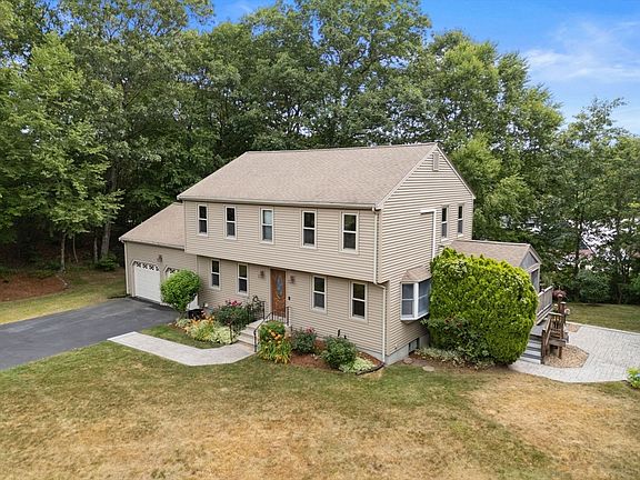 Tucked at the end of a quiet, private cul-de-sac in the desirable Pinecrest neighborhood, this charming 3-bedroom, 1.5-bath colonial offers the perfect blend of comfort, style, & functionality. Step inside to discover gleaming hardwood floors throughout the spacious living room, accented by rustic ceiling beams & a cozy fireplace—ideal for relaxing nights at home. A sliding glass door leads to a screened-in porch, a large deck, and a custom-built fire pit—creating a perfect outdoor retreat for entertaining or unwinding. Upstairs, you’ll find 3 generously sized bedrooms w/ pristine hardwood flooring & a full bathroom. Efficient mini-split systems on both levels provide year-round comfort w/ both heating and cooling.The large, open basement offers excellent potential to be finished for additional living space. Other highlights include low-maintenance vinyl siding & several updates, including a NEW oil tank (2024), stainless steel refrigerator & electric range w/ new fan (2019).