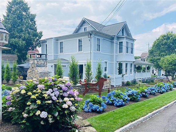 Presenting an iconic piece of history-- Captain John S. L'Hommedieu's 1891-built vintage home, a blend of timeless elegance and modern comfort on famed Oysterman's Row. This architectural gem features 9-foot ceilings and upgrades like conversion from oil to gas, new windows & doors, tankless hot water, extra spray foam insulation, and whole-house water filtration. With 5 beds, 4.5 baths, including a 1st-floor BR, 3rd-floor in-law suite, and a full basement with ample storage, this home gives you all the space you need. The professionally landscaped grounds boast specimen plantings, custom stonework, and a newly crafted bluestone patio and fieldstone fireplace. Inside, a gracious foyer leads to a family room with elegant fireplace, a formal dining room with front porch access, and a kitchen that is open to the patio with a walk-in pantry and mudroom. The oversized primary suite wows with a custom dressing room and renovated bath with radiant heat floors & steam shower. Enjoy glimpses of the harbor before exploring the vibrant maritime community. Walk everywhere- the beach with sports courts, the harbor, eateries, library, arts center, dog parks, Pinkney Park..! Drive to the train or bustling SONO in minutes. Covered parking for 2 cars in the garage & carport completes this offering. Generator-ready. Room for a pool. Don't miss this chance to own a home blending heritage, luxury, and the sublime community vibe of downtown Rowayton! (Subject to seller finding suitable housing.) Please see list of features and improvements in Supplements. Transferrable flood policy is only $715/year, no flooding during Sandy per prior owners. NOTE: Nest security cameras in place. Please have clients sign recording device consent in supplements. Proof of buyer qualification required. Thank you.