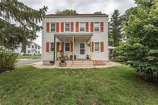 This timeless colonial carriage-style home boasts 4 BRs & 2 baths, situated in a quaint community in Historic North Crosswicks. W/ originality & charm, this home is completed w/ modern updates. Before entering, the rocking chair front porch is a great place to bask in the sun. The dual LRs, each complete w/ brick fireplace