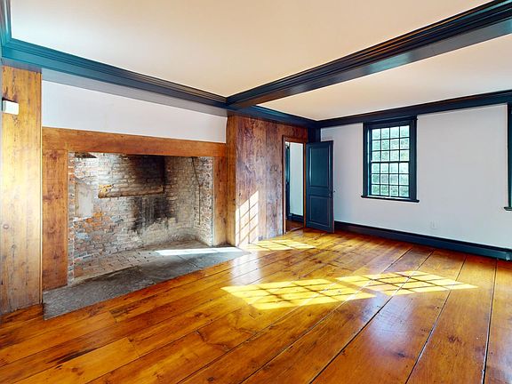 This historic property is a spacious single-family, center-chimney colonial home with two stories and a partially finished attic. The exterior of the building features painted wood clapboard, a stone foundation, and a wood shingle-hipped roof. The property also includes a large yard. Circa 1720.