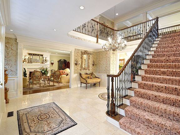 This superb six-acre estate is privately situated on a cul-de-sac at the top of Bernardsville Mountain. Just like its prime location, the grand home is superior in all respects, offering quality craftsmanship and exquisite décor with a pampered and genteel “town and country” lifestyle. The interior is a feast of fine detail and exacting workmanship including intricate moldings, custom wall coverings, custom valances, marble flooring, solid wood doors, and oak flooring with walnut inlay borders. The main living spaces are characterized by sumptuous appointments and elegant detailing. The stunning entrance foyer features marble flooring with a decorative marble medallion, crystal chandelier and wide staircase with wrought iron banister provides a glimpse into the uniqueness of this home. The two-story family room is filled with natural light and features a coffered ceiling , stone surround wood burning fireplace with custom wood mantel, columned entry and direct access to a lovely stone patio. The master suite is distinguished by a wood-burning fireplace with marble surround, detailed tray ceiling, custom window treatments, a spacious sitting room, and his and hers baths and walk-in closets with custom appointments. The four family bedrooms each have their own private baths and are enhanced by designer features such as wood flooring, window seats, and custom window treatments. A finished walkout lower level houses a home theater, extraordinary wine tasting room/cellar, game and billiards areas, and bedroom and full bath. A three tiered barn relocated from Hunterdon County and rebuilt serves as a pool house with fabulous bar, full kitchen, bath, recreation area and more. Extensive hardscaping and spectacular landscaping surround this fabulous estate.