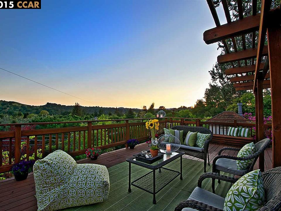 LAFAYETTE SCHOOLS! Stunning 180 degree views of emerald Oak-studded hills! Pristine court, sun-filled home, skylights, travertine, granite, designer finishes, hardwoods, gleaming kitchen, cherry cabinetry, stainless appliances, great indoor/outdoor entertaining, deck, level lawn, enchanting gardens!