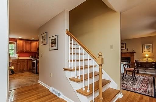 Exceptional colonial set on a beautifully landscaped parcel at the end of a quiet cul-de-sac in a desirable neighborhood. Enter the covered porch and youre welcomed into a warm, inviting atmosphere with updated colors, hardwoods and cozy fireplace. Large kitchen has all the SS appliances in place. Formal dining room with elegant trim opens up to a deck and stylish patio hardscape surrounded by professional landscape and overlooks a manicured lawn & private wooded setting. Family room & living room both have hardwood floors and ample room for all. Master suite boasts 2 very large closets and an updated master bath. Completing the 2nd level is another full bathroom and 2 additional large bedrooms. Two car garage is finished w/drywall & paint, epoxy floor and gladiator cabinet storage. Located just steps away from the 7 mile paved walk/bike path, close to tennis, state forest trails & golf. Best of all, the back yard is adjacent to 99+ acres of protected open space!