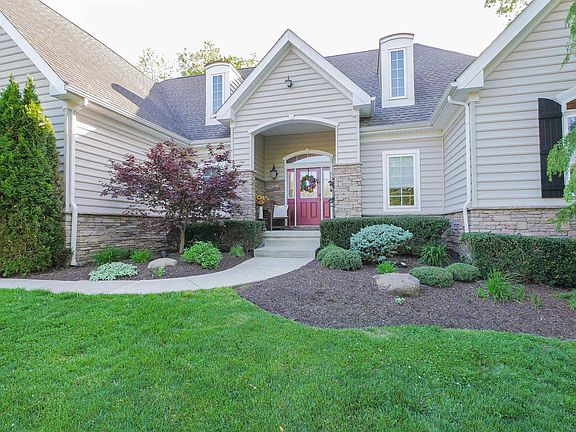 Welcome to The Enclave!! Entering your sanctuary with beautiful landscaping, ponds, and summertime fountains at the entrance of only 14 custom built homes. This stunning 4 bedroom, 3.5 bath custom ranch home has so much to offer! Over 2,900 sq ft of living space on the main level with impressive hard wood flooring and upgraded lighting throughout. Step into the formal living room that has cathedral ceilings and a gas log fireplace to enjoy family time. Enter the captivating kitchen area with granite countertops, stone backsplash, tall cherry cabinets, stainless steel appliances and double ovens. The kitchen opens up to the Great room with a second gas log fireplace and a dining area. Split floor plan with 2 bedrooms at both ends of the home. The alluring master bedroom with recessed ceilings has its own private bathroom with a walk in closet. Second bedroom has its own bathroom. Oversized attached two car garage with a handicap accessible ramp for convenience during the winter months. Need more space?? Head downstairs to the full basement with 2,800 sq ft of space to make your own, perfect for teenagers or an in-law suite! Take in all that nature has to offer out back in the spacious back yard with upgraded landscaping. Come check out this one of a kind property on Danielle Ct. today!